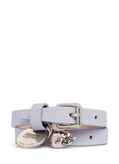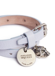 亚历山大麦昆的配饰向来创意不凡,极具辨识度的骷髅头更是品牌象征,充满神秘而反逆的感觉。这款手带以双重环绕设计营造立体感,浅蓝色真皮结合经典的骷髅头吊饰,散发浓厚的麦昆式华丽摇滚美学,为您的摩登造型增添酷感。