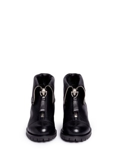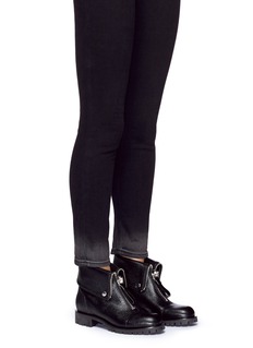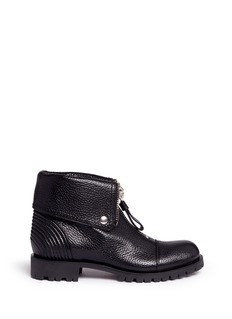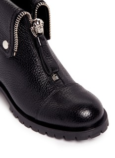 亚历山大麦昆这款靴子采用柔软的粒面真皮打造,配以折翻按扣固定,让您随喜好打造出及踝或短靴款式,提升实穿性。将标志性的银色骷髅头融入拉链开合处,既可点亮黑色造形,亦彰显品牌创意幽默的个性。