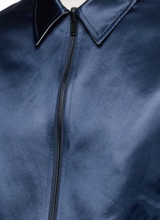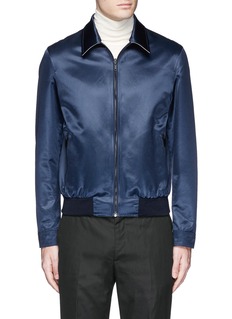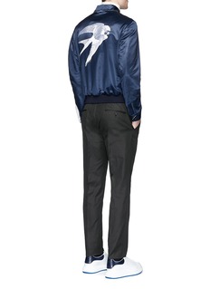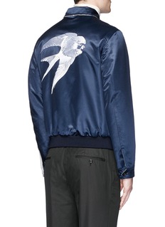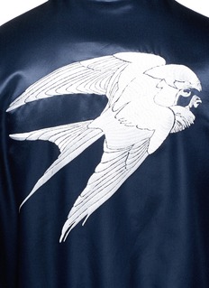 亚历山大麦昆为男士们的秋季衣橱增添华丽格调,这款夹克一面采用深蓝色棉混丝绸缎面料,背面饰以白色老鹰刺绣,展现高贵奢华风范。另一面以象牙白色调表达更为高调时尚态度。罗纹松紧衣摆令服饰更加贴合身材,并彰显帅气运动风范。