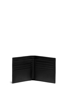 亚历山大麦昆的配饰奢华前卫,是打造摩登绅士造型的理想配饰。这款真皮钱包缀有银色锥形尖钉及圆形铆钉,拼合出经典的英国国旗图案,暗黑之中散发玩味感觉,折叠式设计便于收藏之余亦提升了安全度,自细节处彰显您叛逆的时尚态度。