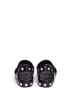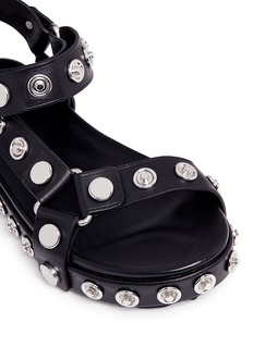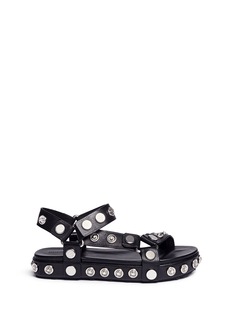 Alexander Wang这款平底凉鞋采用绕踝搭带设计,平衡金属圆形铆钉装饰带来的朋克感,流露刚柔并济的感觉。不妨配衬无全黑造型,完美呈现出前卫的酷感个性。