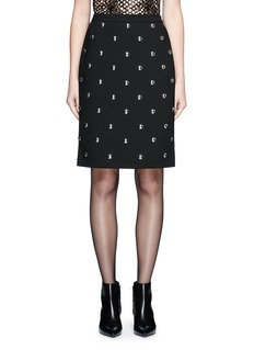 铅笔裙素来予人优雅端庄的感觉,Alexander Wang这款饰有银色圆形铆钉,在黑色底的衬托下透出摩登格调,及膝长度大方得宜,亦让您步履自如,是前卫女士的锺爱之选。