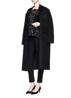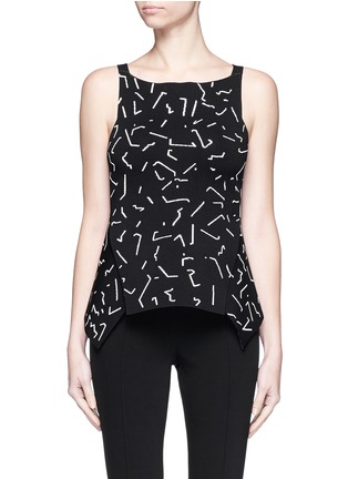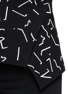 Alexander Wang对黑白色的钟情全然反映在其服饰之中,这款背心亦黑色主调衬托白色线条图案,极具艺术性,并透出冷峻酷感,正面下摆采用独特的层叠式设计,配合荷叶边令廓形更立体,流露优雅魅力。