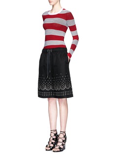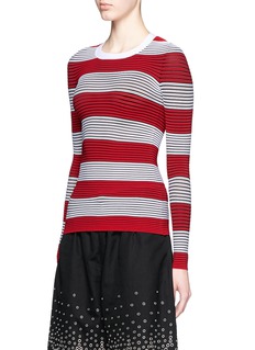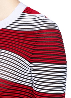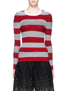 Alexander Wang这款上衣呈现了难得一见的亮丽色彩,红白色粗条纹中加入黑色细条纹,构成富有凹凸感的效果,弹力十足的面料结合修身剪裁,助您展现优美曲线,散发不经意的性感。