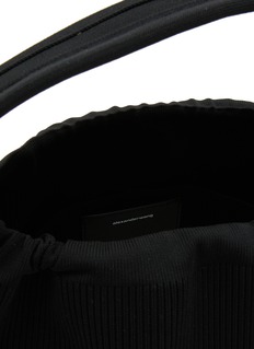 A soft-sculpted silhouette defines this alexanderwang signature, reimagining the classic dust bag as an elevated, tactile accessory. Crafted in ribbed knit with a gentle drape, it cinches with a drawstring top and carries with effortless ease—an off-duty essential with modern edge.