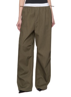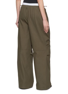 Alexander Wang's olive green trousers artfully blend functionality with fashion-forward style. Featuring a comfortable elastic waistband and a relaxed fit, these pants are crafted from a high-quality fabric that ensures durability and ease of movement. The voluminous wide-leg design adds a modern twist to the classic trouser, making them perfect for both casual and sophisticated settings. The neutral olive shade offers versatility, easily paired with various colors and styles.