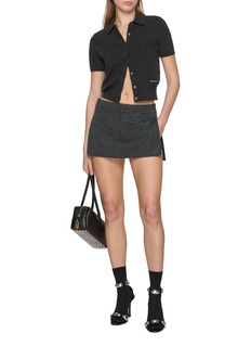 Minimal in proportion yet maximal in attitude, this low-rise skort is cut from a textured wool–mohair blend illuminated with micro hotfix embellishment. Its sculpted mini length and subtle wrap illusion create a clean, athletic-meets-evening finish. Pair it with cropped knits or sharp tailoring to let the sparkle surface quietly command attention.