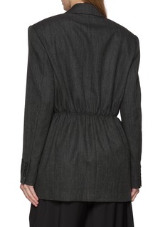 alexanderwang 凭借不拘一格的都市美学,将精致、简洁、舒适和强烈的个人风格相结合。这款西装外套以粗犷工装风格融合高街剪裁,采用宽松廓形与仿旧褶皱展现品牌一贯的街头感与结构美学。