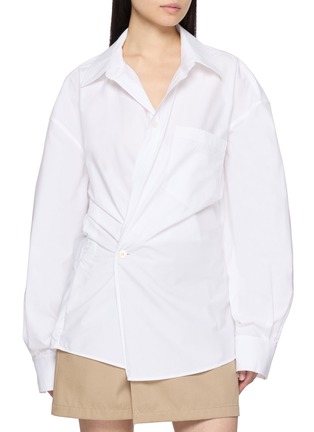 alexanderwang(亚历山大王)凭借纽约街头风格与自由不羁的设计受到时尚达人们的青睐。这款连衣裙用衬衫版型衬出利落基调,扭结裹身添造型张力,迷你长度适配多场景。搭配金属凉鞋,可演绎酷飒又精致的街头造型。