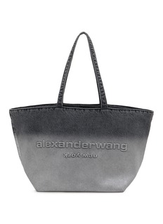 This Alexander Wang tote bag exudes a sleek, understated elegance, perfect for the modern urbanite. It features a monochromatic grey denim finish paired with a subtle texture, complemented by the brand's embossed logo in a tonal design for a contemporary look. The spacious interior and sturdy handles make it ideal for everyday use, whether you're heading to the office or enjoying a weekend outing.