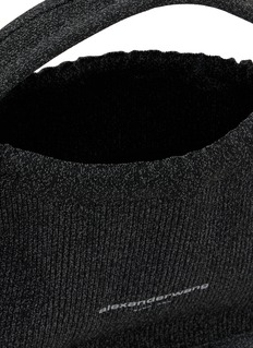 Discover the alexanderwang black textured bucket bag. This stylish accessory features a unique, soft knitted fabric that adds a touch of casual luxury to your ensemble. The bag’s spacious interior is perfect for carrying all your essentials, while the minimalistic design is enhanced with the subtle alexanderwang logo, ensuring a sophisticated and contemporary look.