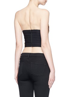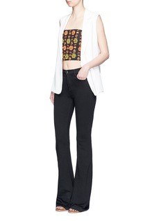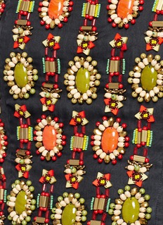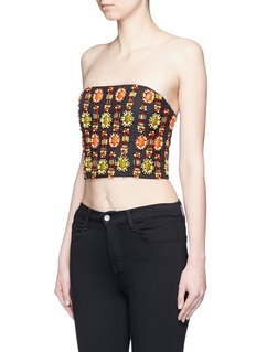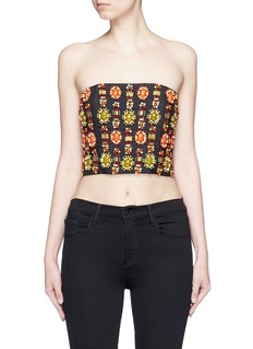 爱丽丝+奥丽维亚凭借大胆用色的设计,创立奇趣独特的品牌风格,在时尚界大放异彩。这款束身上衣采用露肩短款剪裁,内置的防滑拼贴让您安心穿着,可搭衬高腰下装,尽显优美的身体线条,正面缀满橙红、绿及米色调的珠饰,组成重复有序的花卉造型,在黑色底的衬托下透出复古韵味。