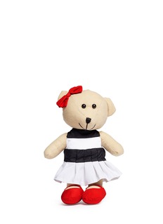 孩子和童真浪漫的女生都无法抗拒布艺玩偶的魅力,爱丽丝+奥丽维亚以自身风格为连卡佛独家打造这款小熊,身穿黑白条纹褶裥连衣裙,头戴蝴蝶结头饰,再换上一双芭蕾舞鞋,显得可爱甜美,作为送给自己或亲友的圣诞礼物再合适不过。