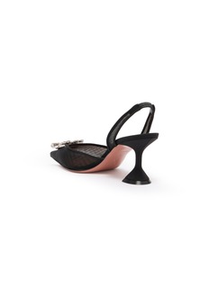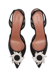 Amina Muaddi 的这款高跟鞋以网纱面料勾勒优雅魅力,璀璨的仿水晶缀饰更增添精致格调。品牌标志性的金字塔鞋跟则颇具建筑美感,瞬间提升造型的吸睛指数。