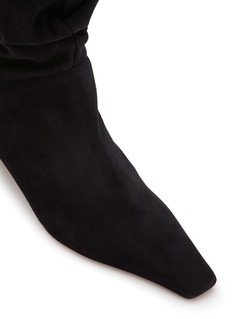 Amina Muaddi 以中东文化背景为灵感,将时尚前卫的风格和精湛的工艺相融合,凭借新鲜独特美学在鞋履品牌脱颖而出。这款低跟靴巧用尖头和褶皱折叠设计为您的足尖带来线条叠化,可搭配修身长裤或丝袜,足够抢占穿搭亮点。