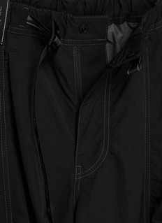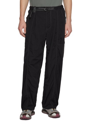 AND WANDER's technical T-shirt showcases mixed-texture paneling with a zip chest pocket featuring reflective trim. The relaxed oversized silhouette combines smooth and ripstop fabrics for enhanced durability and breathability. Curved hemline and contrast sleeves add utilitarian refinement to this performance-driven wardrobe staple.