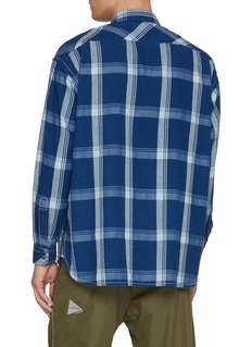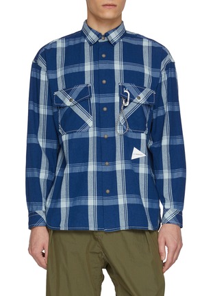 AND WANDER's technical flannel shirt features a bold check pattern with contrast topstitching and utility-style chest pockets with snap-flap closures. The relaxed overshirt silhouette includes a detachable key chain and reinforced details, blending outdoor functionality with heritage workwear appeal. A versatile layer for contemporary exploration.