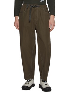 Crafted from high-density 75D yarn, these pants showcase and wander’s technical precision with a subtly brushed texture and water-repellent finish. The three-dimensional cut and wide silhouette move effortlessly with the body, bringing both comfort and structure to outdoor wear.