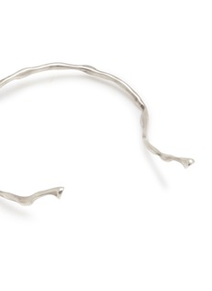 This Ann Demeulemeester necklace exemplifies minimalist elegance with its fluid, sculptural design. Crafted from high-quality silver, the necklace features a delicately curved structure that gracefully contours the neckline, offering a subtle yet striking visual impact. Its open-ended design allows for a versatile fit, while the polished finish adds a touch of luminosity to any ensemble.