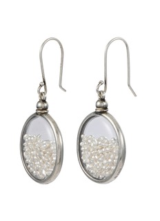 Discover the enchanting charm of these Ann Demeulemeester earrings, designed to make a refined statement. This piece showcases a delicate silver frame encasing a multitude of tiny, lustrous pearls, creating a captivating visual texture. The earring hangs gracefully from a classic hook, ensuring it sways softly with every movement, reflecting light and drawing attention with its subtle elegance.