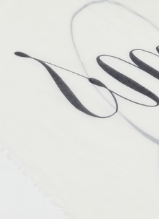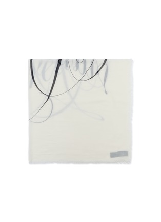 This Ann Demeulemeester scarf exemplifies the brand's affinity for blending artistic expression with luxurious materials. Crafted from premium lightweight fabric, this scarf features a subtle, ethereal print of abstract lines in a contrasting black hue, which elegantly dances across the soft cream background. The design is both understated and striking, offering versatility in styling with its neutral tones.