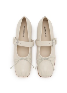 Ann Demeulemeester 传递的情感张力、反叛精神以及极简的设计语言,塑造了一种强烈的个人主义氛围。这款平底鞋以简约且具有建筑感的轮廓设计焕新玛丽珍鞋型,光泽皮革展现出优雅街头格调。