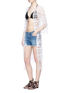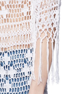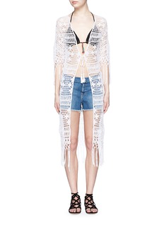 Anna Kosturova的设计灵感常源自海洋,单品洋溢自由的异域风情,令人爱不释手。这款外套以品牌标志性的钩编技术织成,白色纯棉线段构成疏密不一的纹理,配以袖口及下摆附流苏装饰,简约而富有艺术感,不论内搭泳装或日常服饰,均是春夏层次造型的理想搭档。