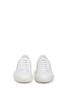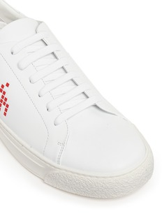 白色运动鞋热潮持续,Anya Hindmarch这款网球鞋以外星为主题,在光滑的纳帕小牛皮表层上,缀以由红黑拼色方格组成的趣致怪兽图案,展示出您率真童趣一面。