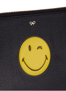 Anya Hindmarch这款手拿包展现了品牌俏皮一面,选用黑色纹理真皮制作,加上简约的长方形设计和适中的容量,适合放置不同的随身小物如钱币、唇膏等,正面的单眼笑脸图案由多个圆孔拼成,洋溢满满趣味。