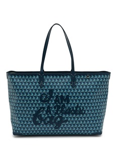 Step into sophistication with the Anya Hindmarch 'I Am A Plastic Bag' tote, innovatively crafted from recycled materials. This eco-friendly bag boasts a striking geometric pattern in a deep blue palette, complemented by durable leather handles. Its spacious interior makes it perfect for daily errands or as a chic work accessory. The bold statement print not only adds a touch of exclusivity but also reflects a commitment to environmental consciousness. Ideal for the stylish, eco-aware individual looking to make both a fashion and a sustainable statement.