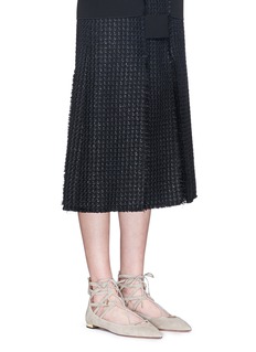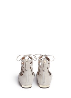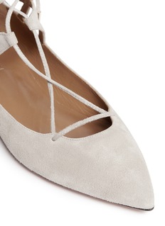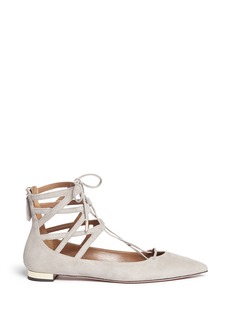 Aquazzura最具辨识度的Belgravia鞋款借鉴了希腊式系带凉鞋的廓形,尖头款式鞋履一般予人硬朗感觉,加入独一无二的系带及镂空设计后,散发女性妩媚的韵味,新季的浅灰色清新素雅,彰显您独有的时尚态度。