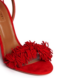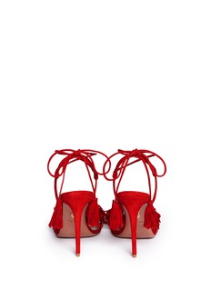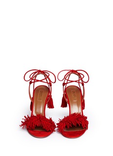 Aquazzura的鞋履是展示女性美的最佳搭档,Wild Thing款式是品牌最受欢迎的款式之一,单搭带及系带设计袒露足部肌肤,散发浓郁的性感魅力,新季此款加上摇曳的流苏装饰,走路时更显大气,配以热情的红色,令人过目难忘。