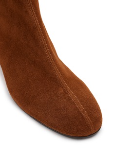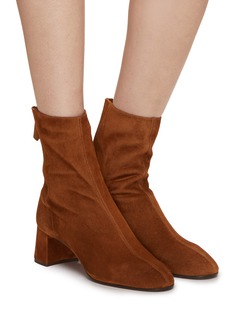 Aquazzura 以意大利传统高级工艺和奢华造型展现现代设计的巧妙平衡。这款中跟筒靴以柔软绒面皮勾勒经典廓形,轻松提升摩登酷感指数。