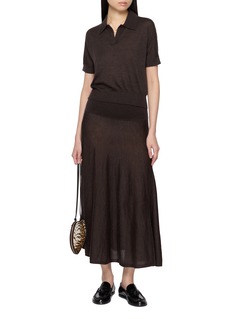 arch4 于2017年在伦敦成立,专心打造精美的羊绒产品,并致力于可持续的奢侈时尚。这款半裙以轻薄针织呈现若隐若现的微透质感,赋予造型轻柔而摩登的气息。