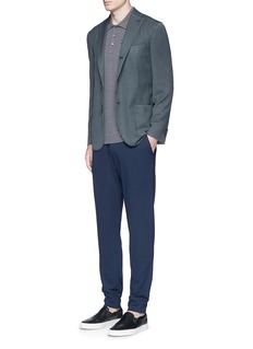 简朴舒适的运动单品是近季最流行的款式,擅长打造实穿百搭设计的阿玛尼黑标为您带来此款休闲长裤,深蓝色耐搭低调,面料柔软富弹性,配以松紧裤腰及裤管口,让您格外轻松自在。