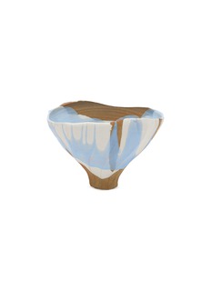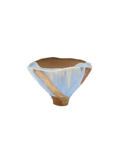 This artistically designed tea bowl is a stunning fusion of natural elements and vibrant colours, perfect for enhancing your tea experience. The bowl features an intriguing mix of earthy brown tones and striking blue hues, mirroring the beauty of earth and sky. Its unique, angular shape and textured surface not only make it a pleasure to hold but also add a visual interest to your tea ritual.