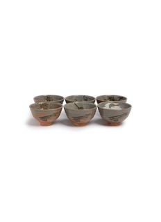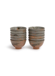 Discover the charm and individuality of this set of tea bowls, each piece handcrafted to bring a unique touch to your tea ceremonies. The bowls are adorned with artistic illustrations of nature and abstract designs, rendered in soft earthy tones with subtle accents of orange and grey, ideal for those who appreciate variety and artistic expression in their tea ware.