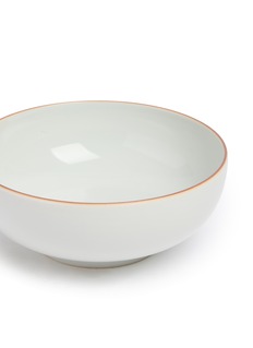 Savour every bite with this elegantly simple bowl. Its pristine white hue offers a touch of refined serenity to your dining experience. A delicate trim adds a subtle luxury to the design, making it a distinguished piece in your collection.
