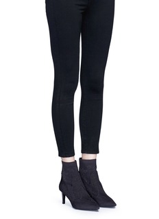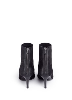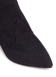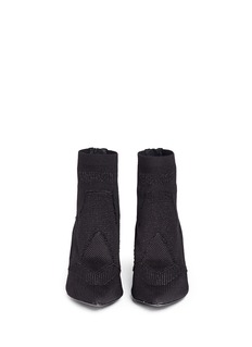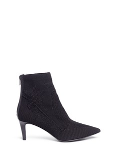 阿修的鞋履款式多变,可满足不同场合所需。这款高跟过踝靴拥有针织表层,并掺入黑色亮线,构成低调的几何暗花,简约别致,鞋床附有舒适的软垫,集时尚性与实用度于一身。