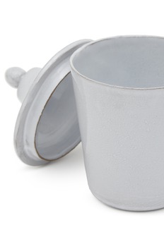 The Elisabeth ceramic tumbler is defined by its clean lines and topped with a lid. Designed to hold Astier de Villatte candle refills, it is stamped with the monogram and the initials of the artisan who crafted it for an exquisite touch.