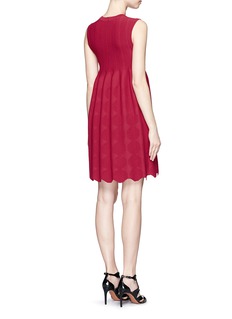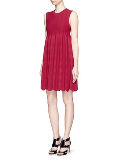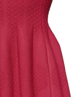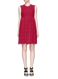 阿瑟丁阿拉亚擅长以弹性面料结合称身剪裁,彰显女性的优美身段。这款连衣裙的针织弹性面料上附有细致的圆点花纹,触感独特,高腰位置的褶裥延伸出丰盈的裙摆,与波浪形裙摆相呼应,同时可拉伸身型比例,衬得您高贵大气。