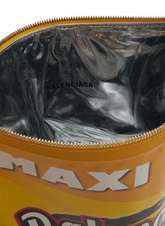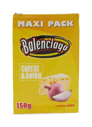 Balenciaga(巴黎世家)这款手袋采用皮革面料制作而成,正反面饰以 chips 艺术作品印花,带来趣味视觉效果。