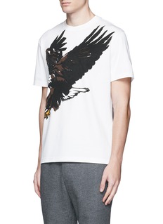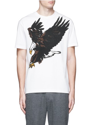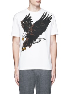 巴黎世家此款T恤以大气十足的秃鹰为主打,描绘得极为细致的图案充满艺术气息,背面附有品牌压印标志,以低调方式展现品牌风格,不妨搭配简朴的休闲裤,展现轻松一面。