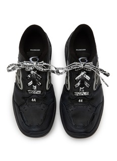 A study in effortless rebellion. Crafted from supple leather, the Hamptons Sneaker stands out with its clean silhouette and deliberately undone details, including frayed edges, exposed stitching, and asymmetric graffiti branding on the laces. Designed to look worn-in from the first step, it’s calculated chaos that defies perfection, embracing authenticity instead.