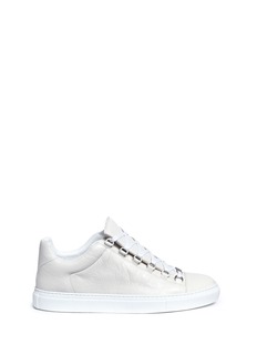 Arena是巴黎世家的经典系列之一,这款低筒运动鞋采用白色纹理羊皮配以同色橡胶鞋底,打造出永恒经典的单色设计,加入银色金属配饰点缀,令您轻松成为街头焦点。