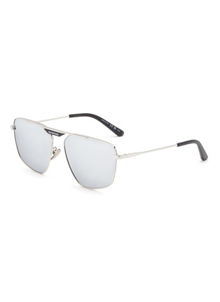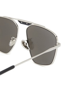 Balenciaga(巴黎世家)这款太阳眼镜以银色金属制成细边飞行员款式镜框,配有摩登的反光镜片,鼻梁上还蚀刻有品牌 logo,带来鲜明辨识度,轻松搭配你个性十足的时尚装束。