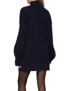 The ribbed cotton-wool knit drapes fluidly, balancing ease and edge with an oversized turtleneck and dropped shoulders. At the waist, Balenciaga punctuates the silhouette with a silver-toned clip that gathers the fabric into a striking focal point. Style with sheer tights or sleek boots for a modern winter statement.