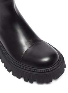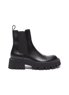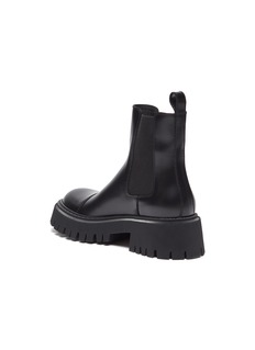 Balenciaga(巴黎世家)这款短靴采用黑色调真皮制作,并凭借着流畅利落的剪裁打造出富有线条美感的简约廓形,可轻松搭配你的摩登酷感装束。