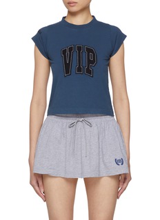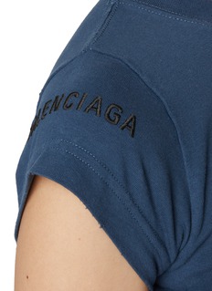Channel a preppy flair into your everyday essentials with this T-shirt from Balenciaga. Cut into a shrunken fit complete with cap sleeves, this piece is defined by its rich blue hue and VIP embroidered front. Style with drawstring bottoms and high socks for your athleisure looks.