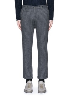 BARENA这款裤子采用温暖的混羊毛面料打造,以西服裤款式为基础并加以发挥,通过卷边裤腿口设计塑造出及踝长度,配以腰侧的钮扣搭带及正面的双嵌线口袋等细节,让您的造型更显别致时尚。